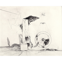 1965年頃からの数年間、山本の美術家としての新たな段階への胎動が始まる。銅版画という領域への挑戦である。最初期の作例の多くはスケッチブックの切れ端に刷られた習作にすぎないが、《震動発生D》や《変形の記憶》のように署名や年記などの体裁が整えられた完成度の高い作品も現れている。